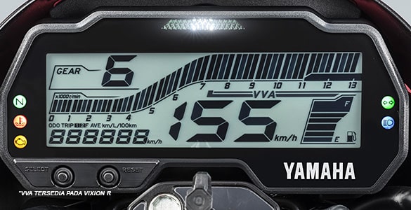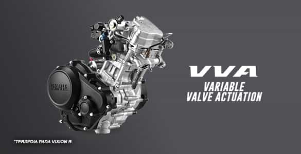 TIPE MESIN:Liquid Cooled 4-Stroke, SOHC, 4 Valve, VVA (Vixion R), Liquid Cooled 4-stroke, SOHC (Vixion)
